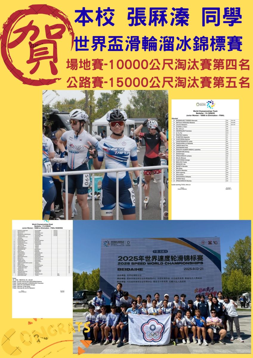 附中之光!世界盃滑輪溜冰錦標賽