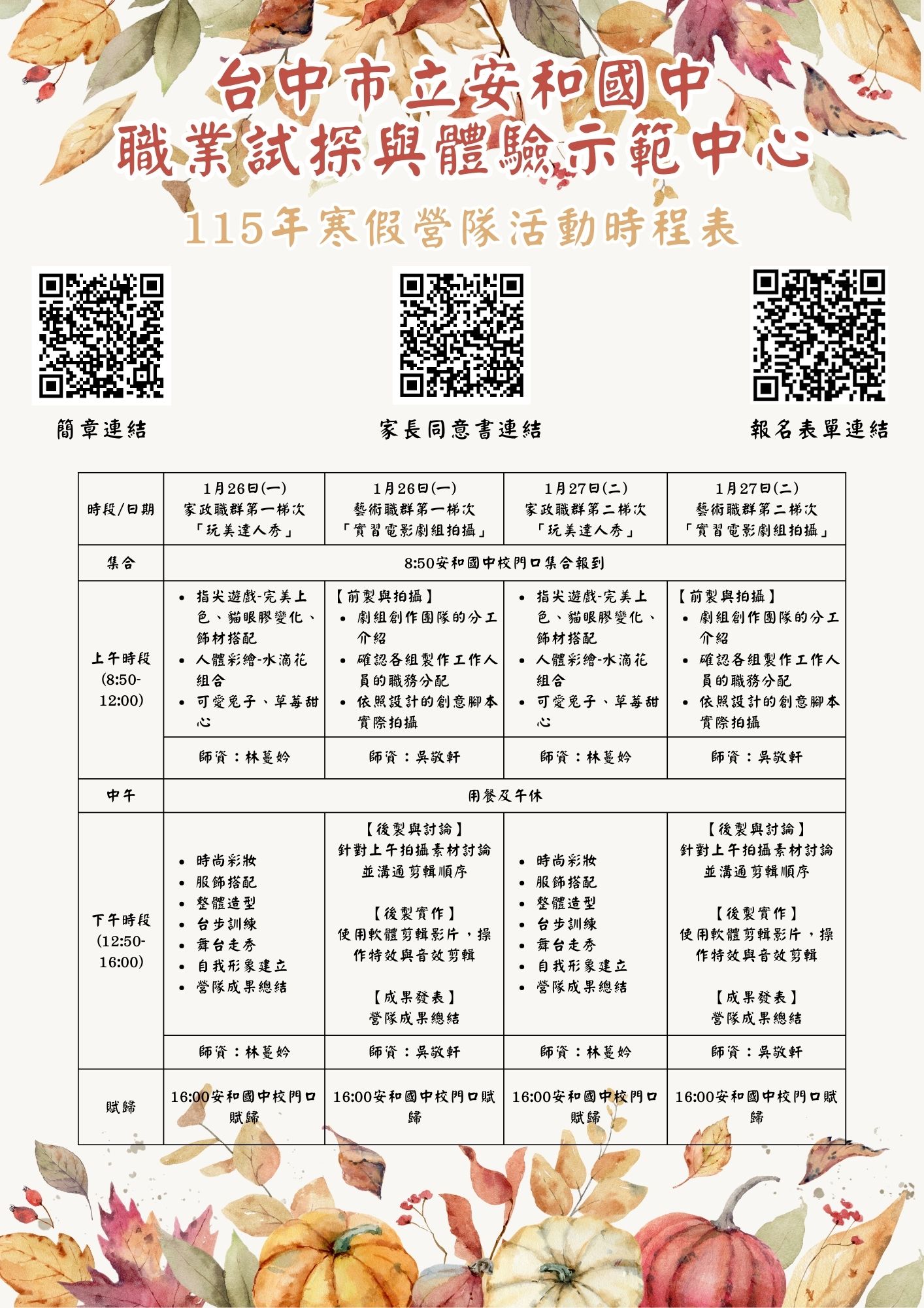 轉知~安和國中「區域職業試探與體驗示範中心」115年寒假營隊活動簡章