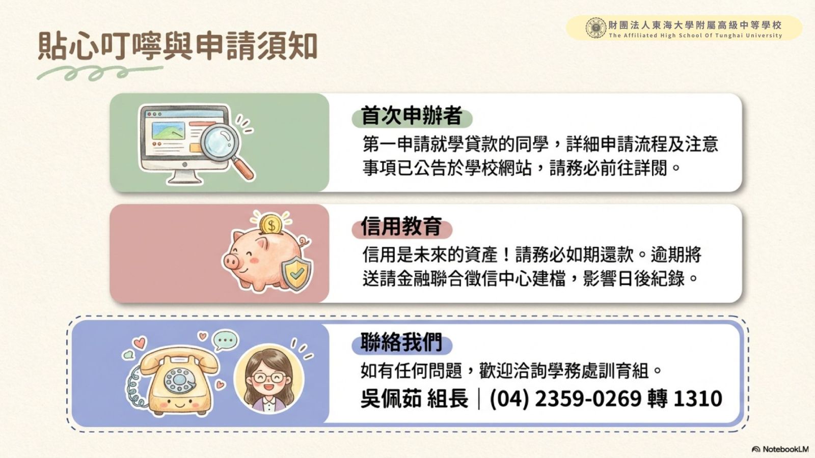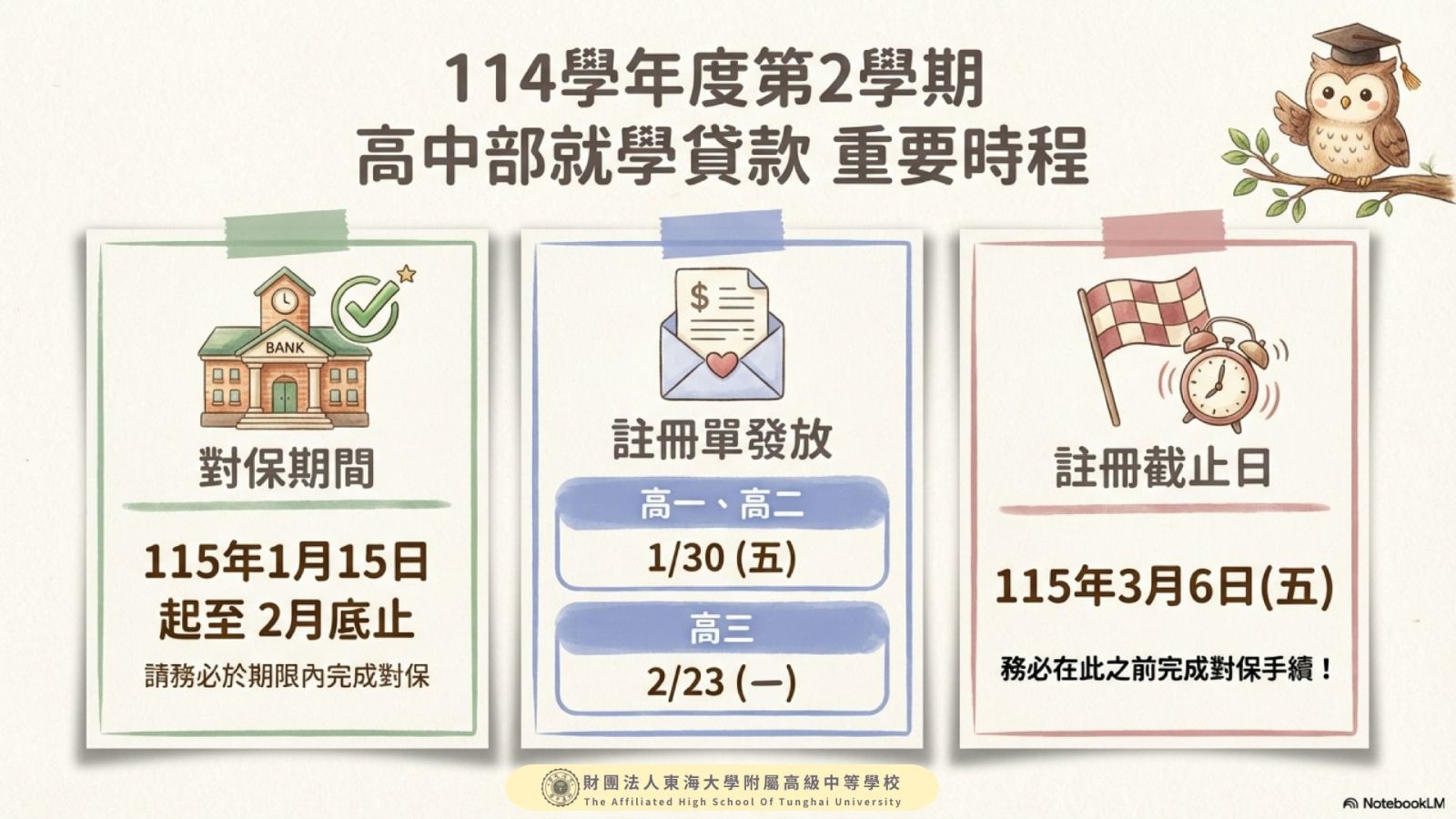 財團法人東海大學附屬高級中等學校--獎助消息-114學年度第2學期就學貸款重要時程